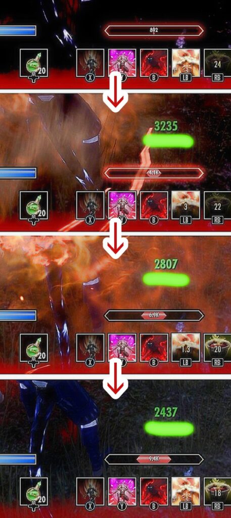 - (※)即座にフラフラ状態+重攻撃を当てたことにはならないので、重攻撃のダメージボーナスはないので留意。フラフラ状態にした後なら重攻撃にダメージボーナスが入る