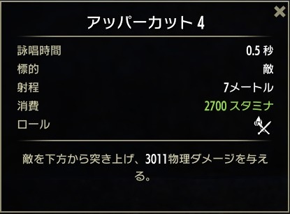 - 対象の敵の目の前に瞬時に移動して、物理属性の直接ダメージを与える
