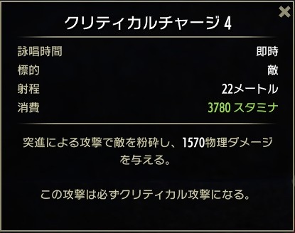 - 「クリティカルチャージ」の一撃は必ずクリティカルする