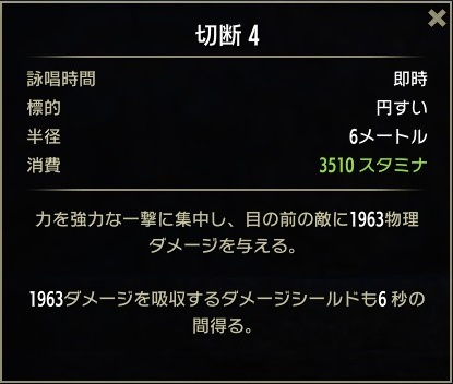 - 両手武器を装備した状態で敵を倒すと、10秒間スタミナ再生が上昇する