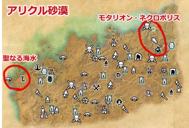 - アリクル砂漠の東端にある「モタリオン・ネクロポリス」の奥地にあるサークルに海水をまく