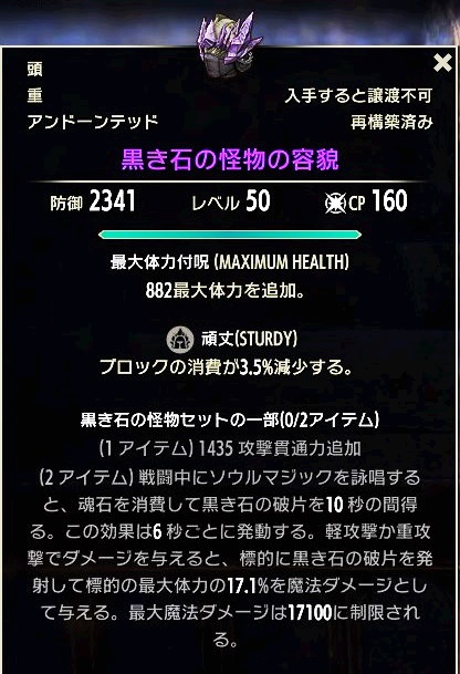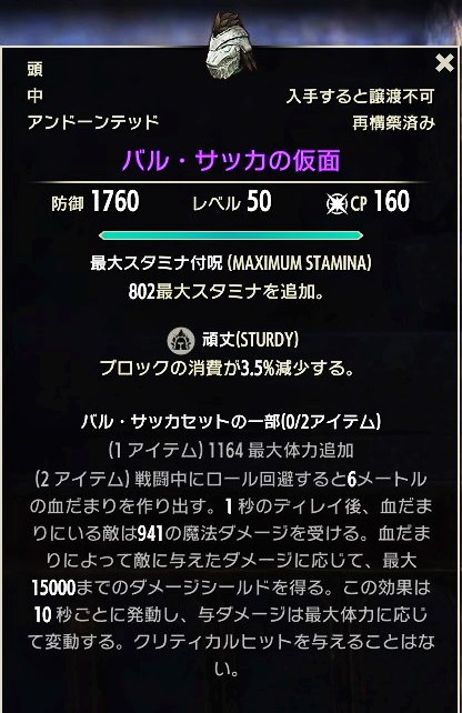 - 頭と肩の部位のみの2セットで発動可能な装備アイテム