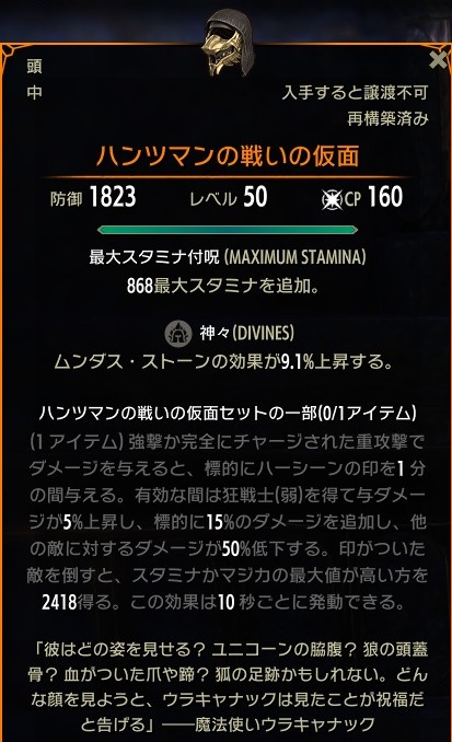 - デメリット:臆病(弱):武器ダメージと呪文ダメージが 215 低下する