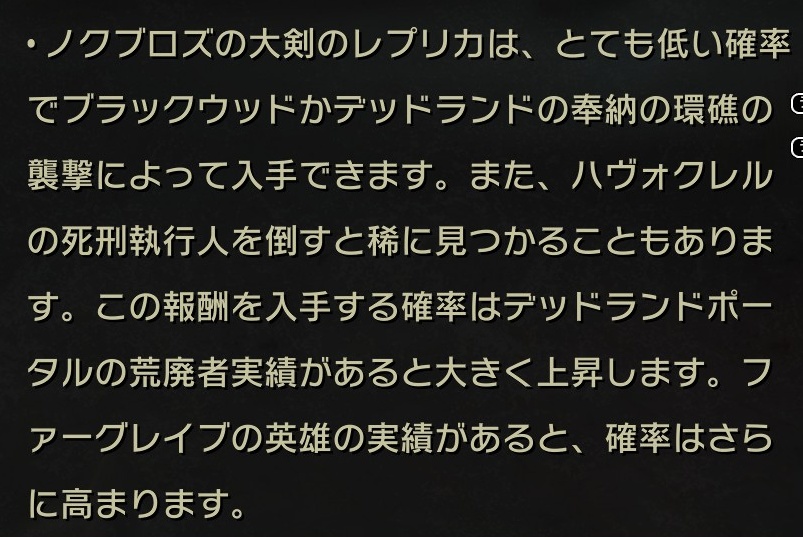 - 朽ちた枝角 (次回のゼニタールの信仰イベントで獲得可能、現在は獲得不可)